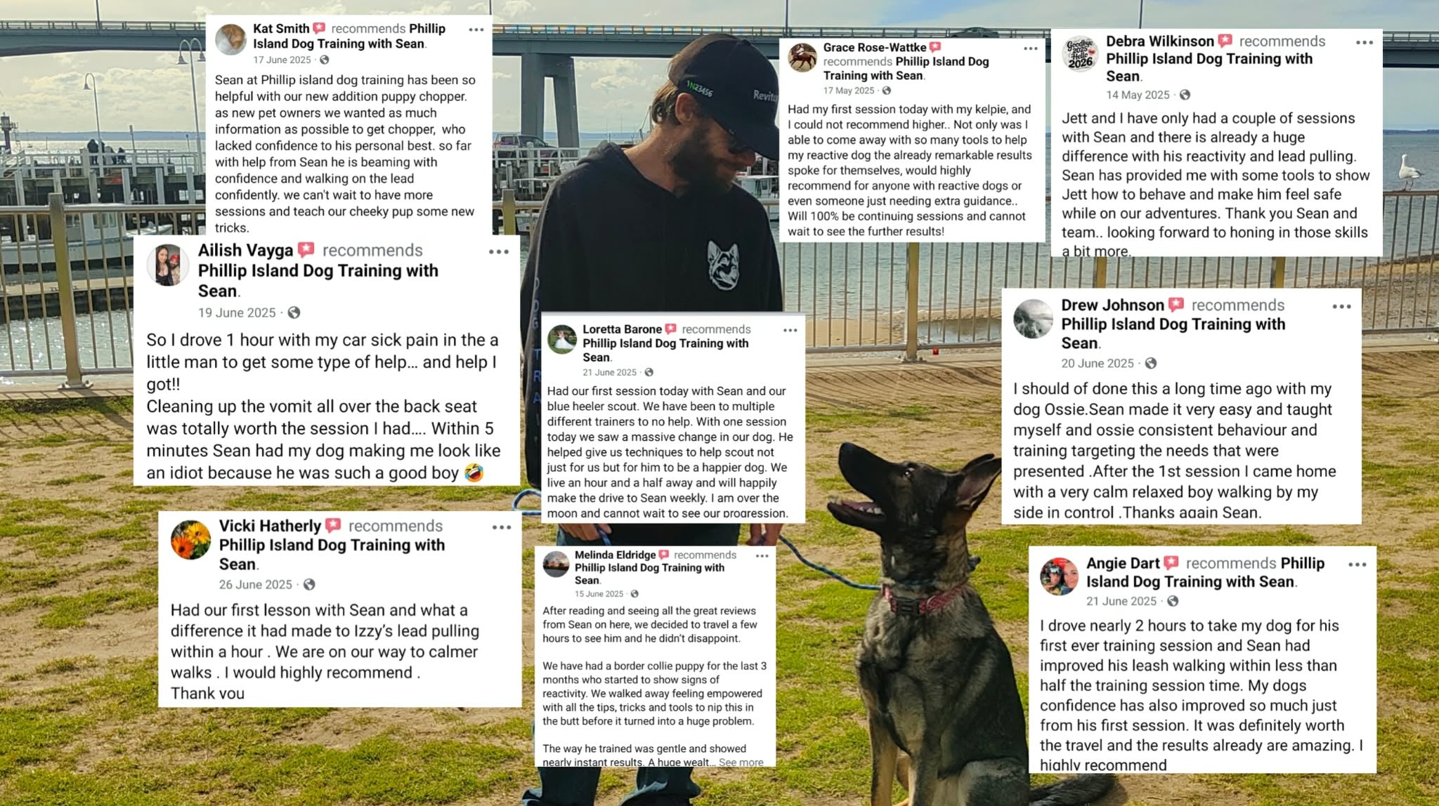 With over 100 5-star reviews here’s a snapshot of some of Phillip Island Dog Training’s Customer Feedback: